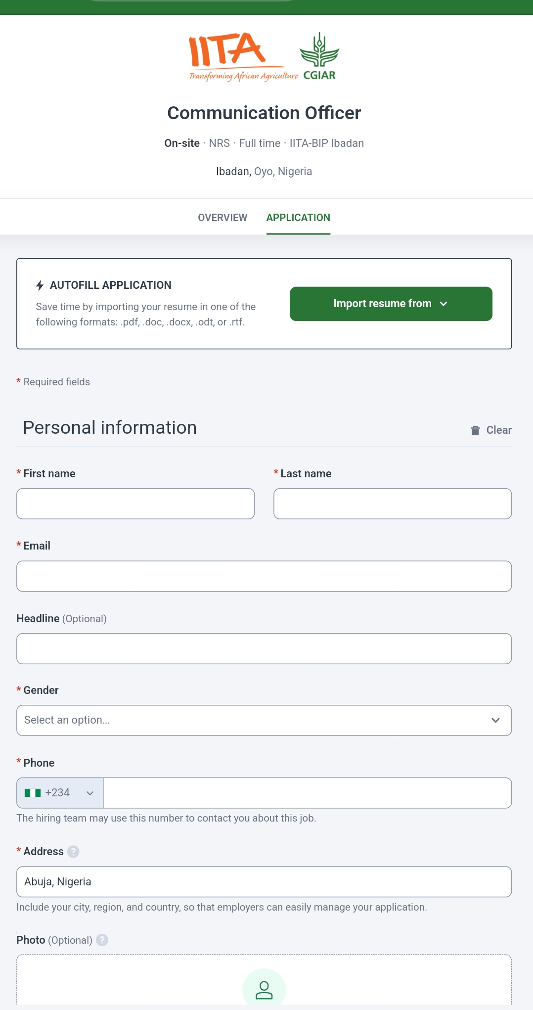 6. Communication Officer – On-site, NRS, Full-time | IITA-BIP Ibadan